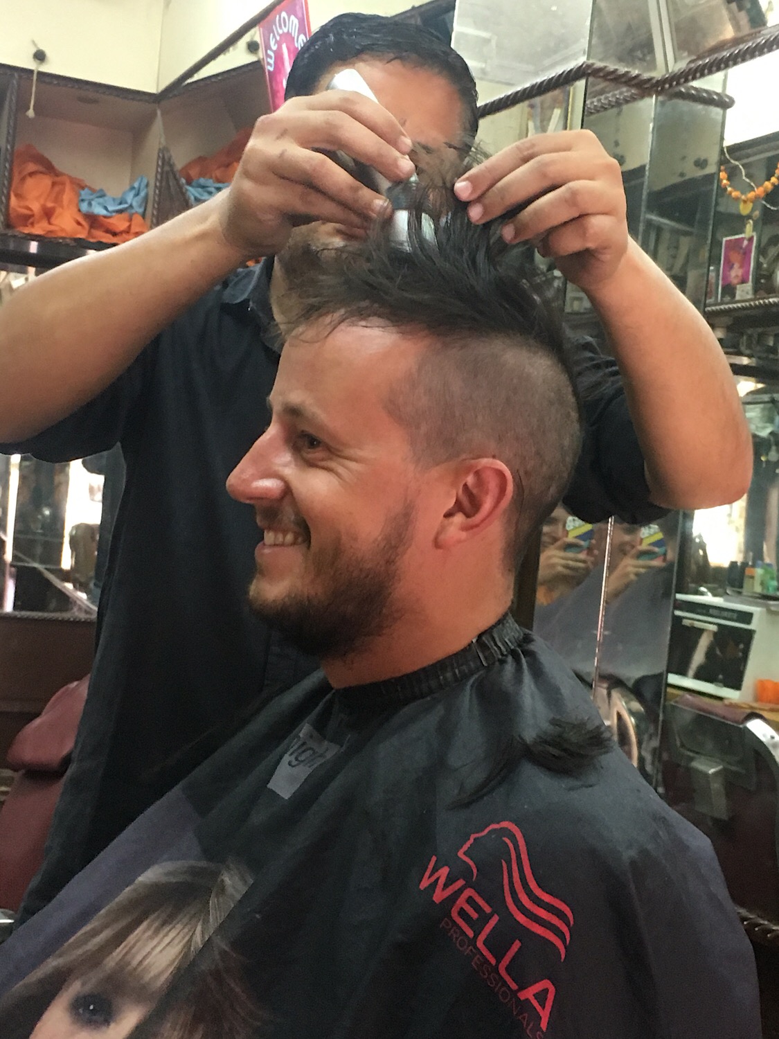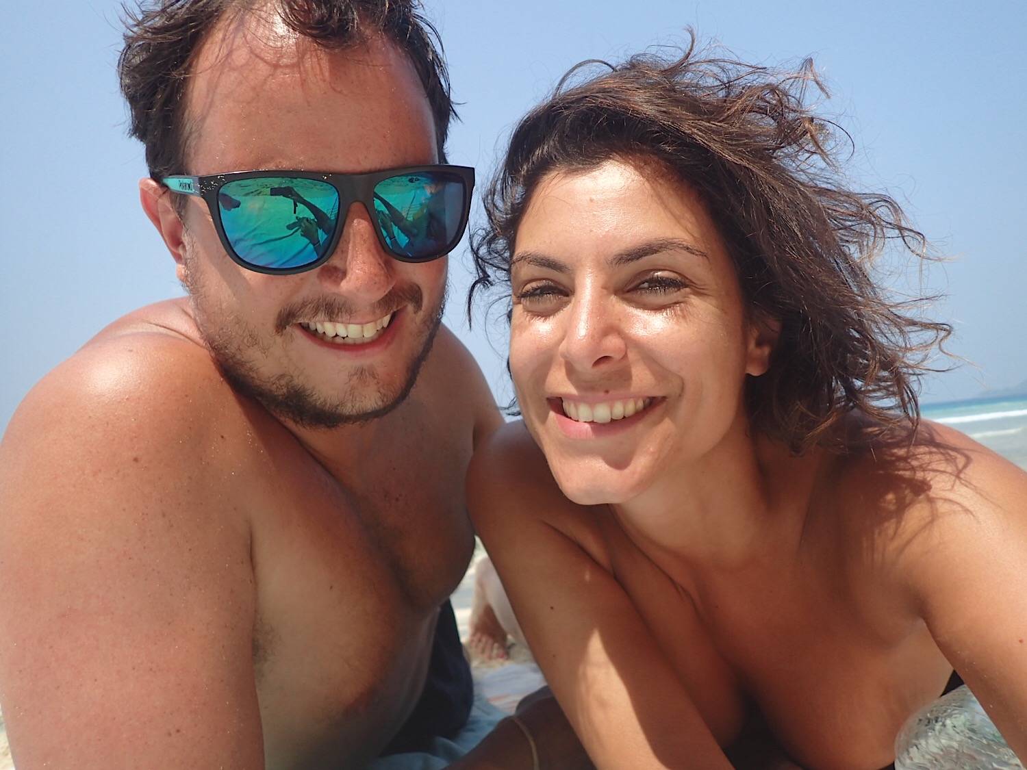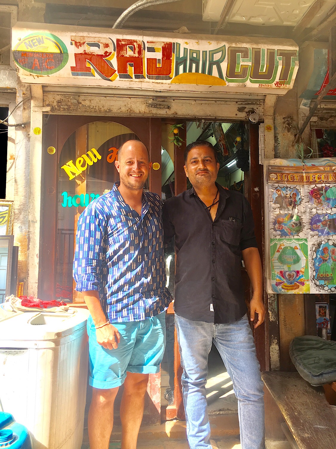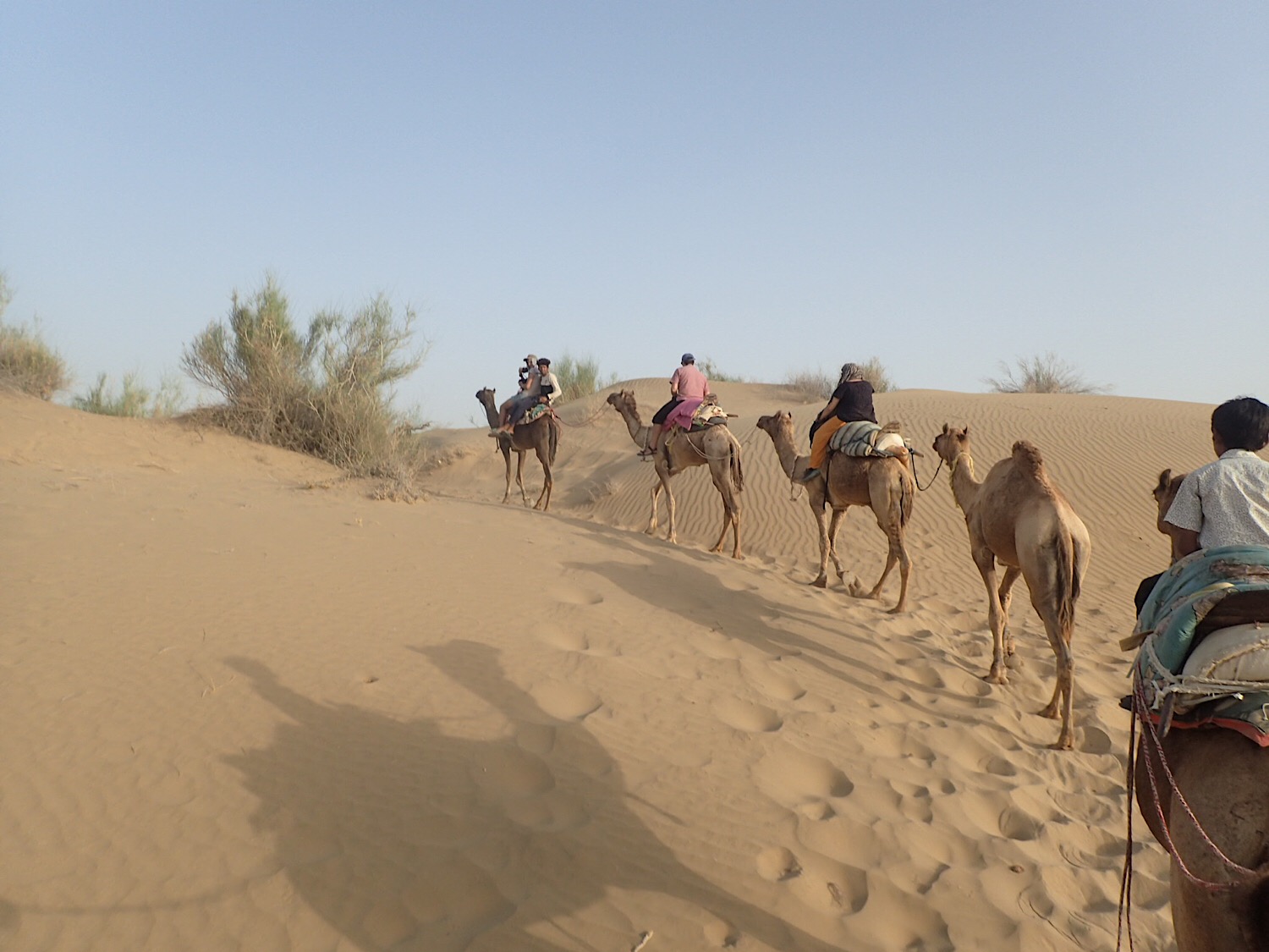 The unquestionable highlight of Jaisalmer (just edging ahead of when Fred had all his hair shaved off by Raj – see picture) was our overnight camel trek in the Thar desert. We drove out into the middle of nowhere in a jeep where we met our guides and camels, I was assigned Jony and Fred was riding Al Pacino (lols). Once we were acquainted, we plodded across the desert through fields of wind turbines (which was odd but also cool) for a couple of hours passing only a handful of goats, some cacti and the occasional shrub. When we reached a lovely spot in the dunes we dismounted and set up camp for the night. There were some metal frame camp beds and blankets and that was our bedroom for the night – under the stars in the desert. Our guide and his assistants cooked up a delicious and hearty dinner on the open fire of daal, veg curry, popadoms and rice which we scoffed down followed by some nicely chilled beers (ok so it wasn’t Bear Grylls level of wilderness – but it was exciting nonetheless). After watching the sun go down on the desert we sat around the fire chatting before turning in. The adventure was made even better due the lovely Dutch couple Rob and Tosca who were also on the trip and who introduced us to the concept of self drive and sleeping on top of your car in Africa (more about that in following posts). It was so surreal and exciting to be in the open desert lying under a sky filled with stars that I was too excited to sleep for the first few hours, we lay there watching the sky and spotting an unbelievable number of shooting stars. I also had one of the desert dogs, a lovely little pup come and keep me company, snuggling down into the sand between mine and Fred’s beds. Although the majority of western tourists that make it to Jaisalmer probably do the overnight camel safari it was truly an awesome and incredibly unique adventure that left us both buzzing!!!! The next morning we watched the sunrise with a cup of chai before a great breakfast (that included maggi instant noodles – which I was totally fine with). Overnight they loosely tie the camel’s front legs together, which feels a bit cruel, then let them roam free whilst we were sleeping, tying their legs together means they shouldn’t roam too far, in theory. However when we were almost ready to leave plucky Rob volunteered to go with some of the young camel herders to round them up. They were gone rather a long time and it turned out they had actually roamed an awful lot further than they usually would meaning it was a long old sweaty walk for Rob! Once they’d returned we boarded our trusty steeds and headed back to where the jeep would pick us up. We also got the chance to get the camels ‘trotting’ which was bloody bumpy and hilarious.
