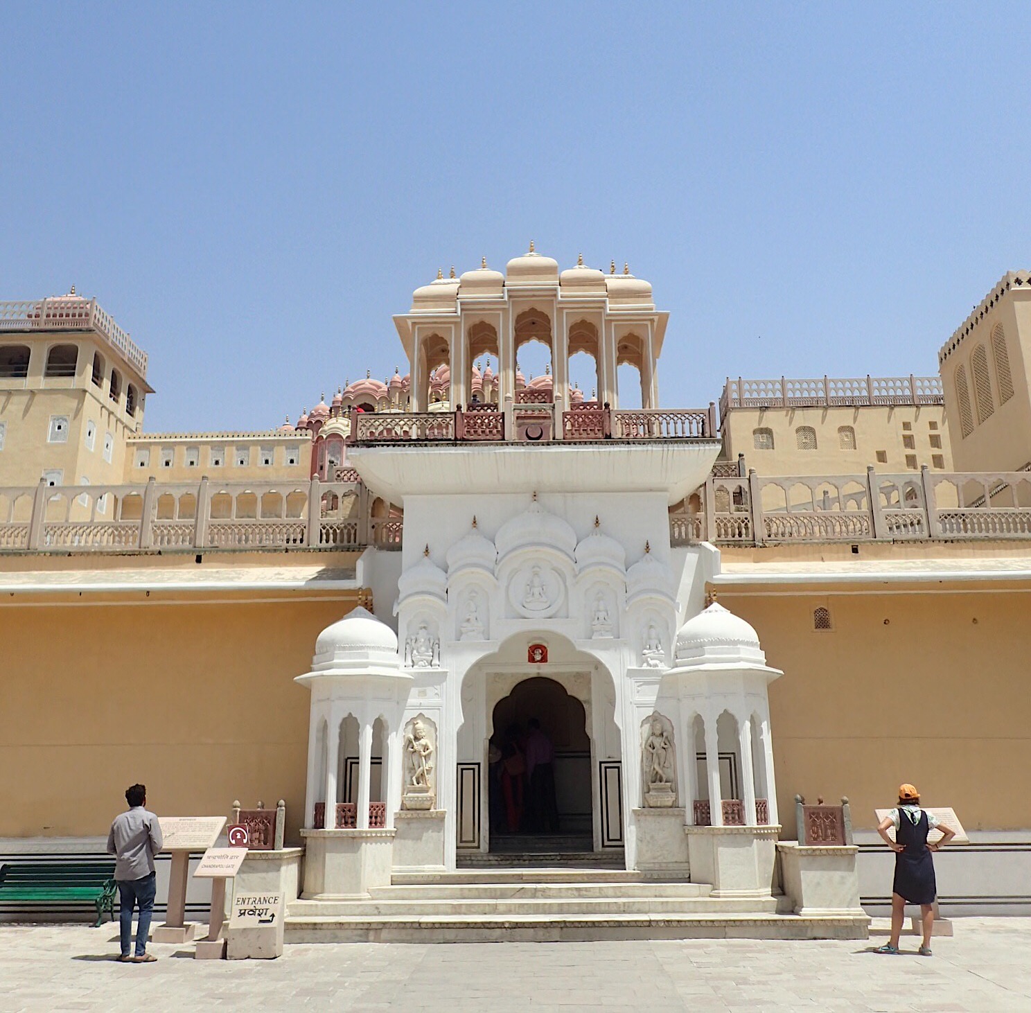 On our first night we happened to hail down an extremely enterprising Tuk tuk driver called Roshan who also offered to be our guide for our time in Jaipur, and after reading through some very effusive comments from previous clients in his guest book we agreed to have him show us around the city for the next few days. First we took in the City Palace – a wonderful pink complex where the Jaipur Royal Family still reside today (although they don’t actually have any power they still have a lush manor). This was our first encounter with an audio tour and we loved it particularly since they all seem to be narrated by an extremely well spoken Indian chap who’d clearly learnt to speak English from the BBC World Service circa 1940. We learnt lots about how the royal Rajasthani’s lived including their love for Polo, which the women also loved to play but since they weren’t allowed to flaunt themselves in broad daylight playing such a scandalous game they had to play at night. ‘But how would they ever see the ball?’ I hear you cry. Well the ingenious solution was a metal gyroscope ball which had a candle inside it so the lovely ladies could actually see what they were trying to whack! As the chap on the audio guide exclaimed “how cool is that?”