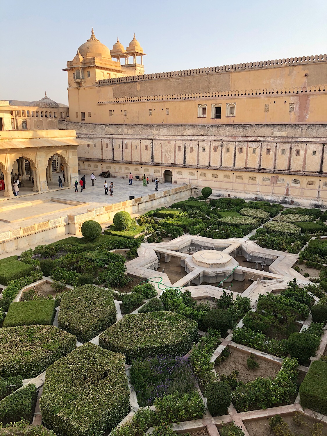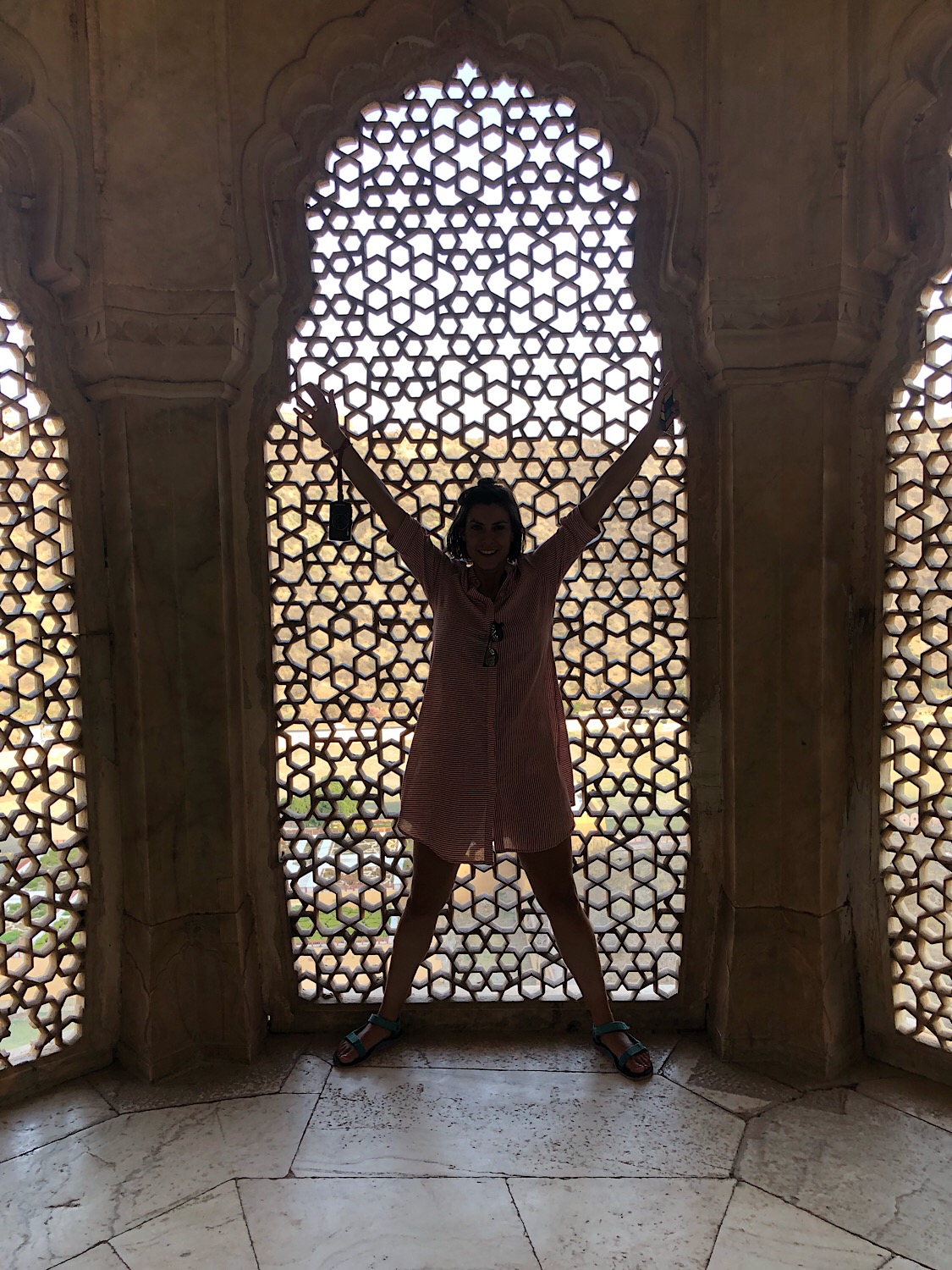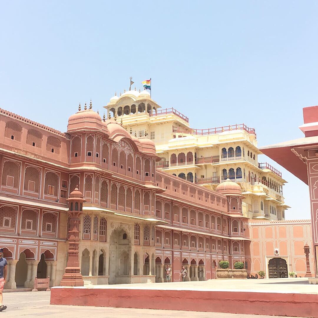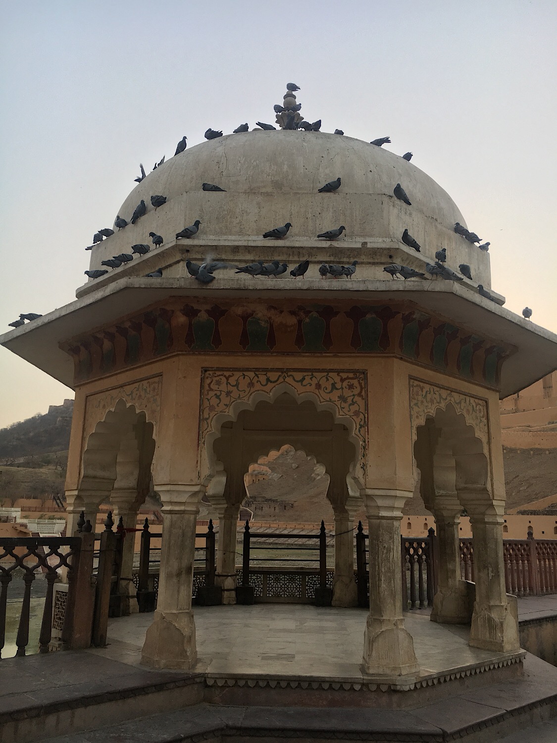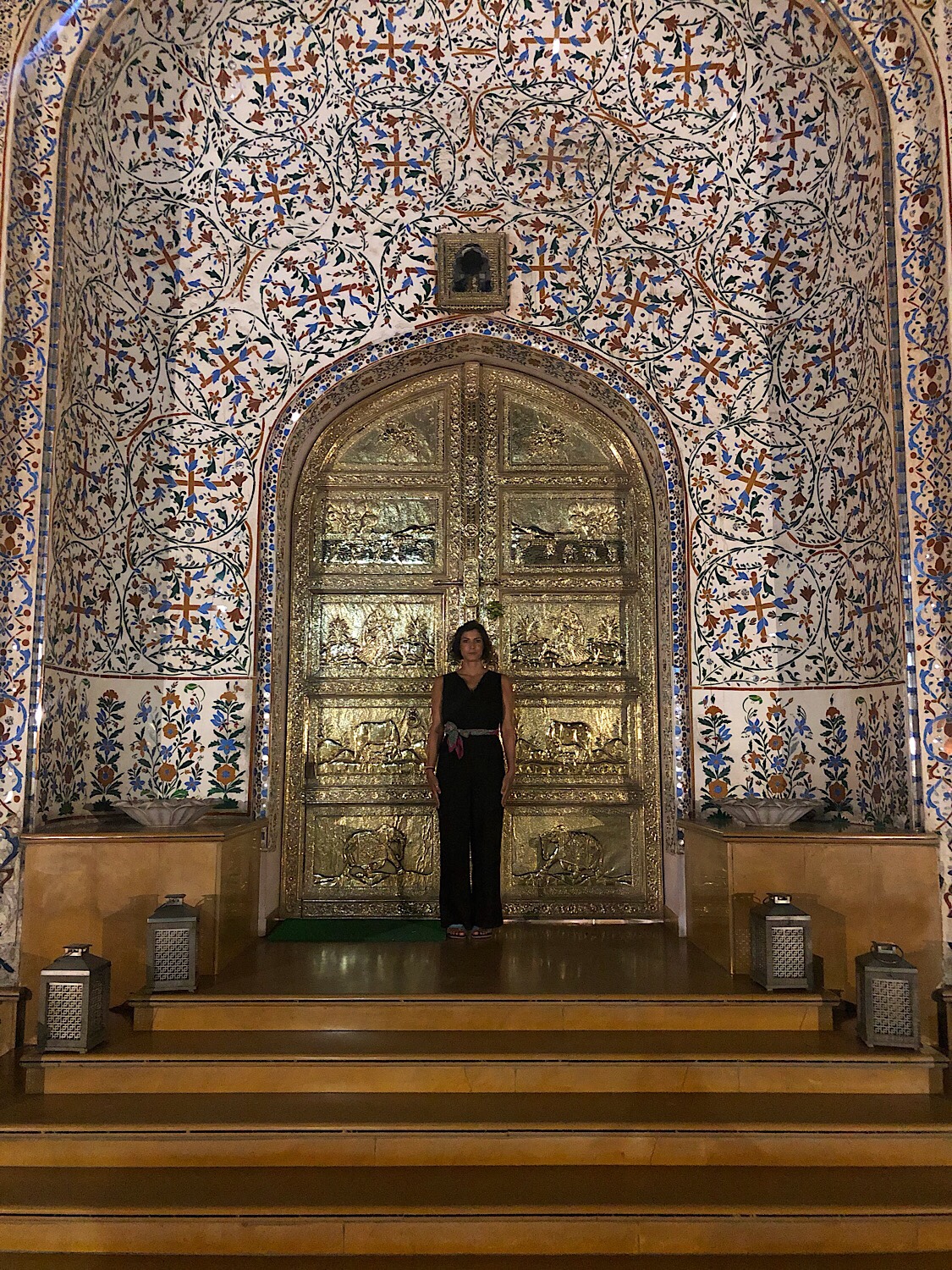 So Jaipur the pink city is actually more terracotta than pink but that doesn’t detract from how wonderfully chaotic and brilliant it is! After a very dusty drive from the airport we arrived at our hotel – the Umaid Mahal Heritage Palace Hotel that I’d chosen since it was really over the top on the decor front – right up my street, huge golden doors greeted us upon arrival and the inside didn’t disappoint either. We had a lovely sunset jar on the roof terrace overlooking the city before heading to Bar Palladio for a delicious Italian supper and cocktails. Bar Palladio is a gorgeous Art Deco meets colonial villa style bar/restaurant with epic royal blue and white decor, a seriously impressive bar and an atmospheric garden with covered chaise longues and sofas – definitely worth a visit if you ever find yourself in Jaipur and need to escape the chaos.