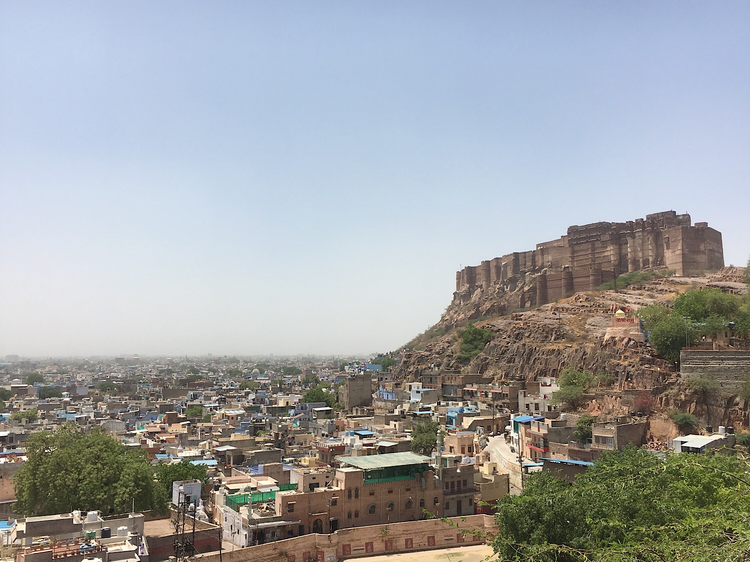 Another Indian Railways train took us back into the heart of Rajasthan for an action packed 24hrs in Jodphur, we arrived late in the evening and a shister tuk tuk driver dropped us off in completely the wrong place, after trying to negotiate a maze of sketchy alleyways with all our worldly belongings we were lucky enough to bump into a relative of the guy who owned the hotel we were trying to locate. It was a beautiful restored haveli with loads of original features – think huge wooden doors and sweeping stone arches in all the rooms. It was owned and run by an Uncle and nephew, who had inherited the property from their great grandfather who had been one of the many locals who had been ‘gifted’ the property from the Maharaja when then UK had declared independence and HRH was forced to offload his vast estate to the people.